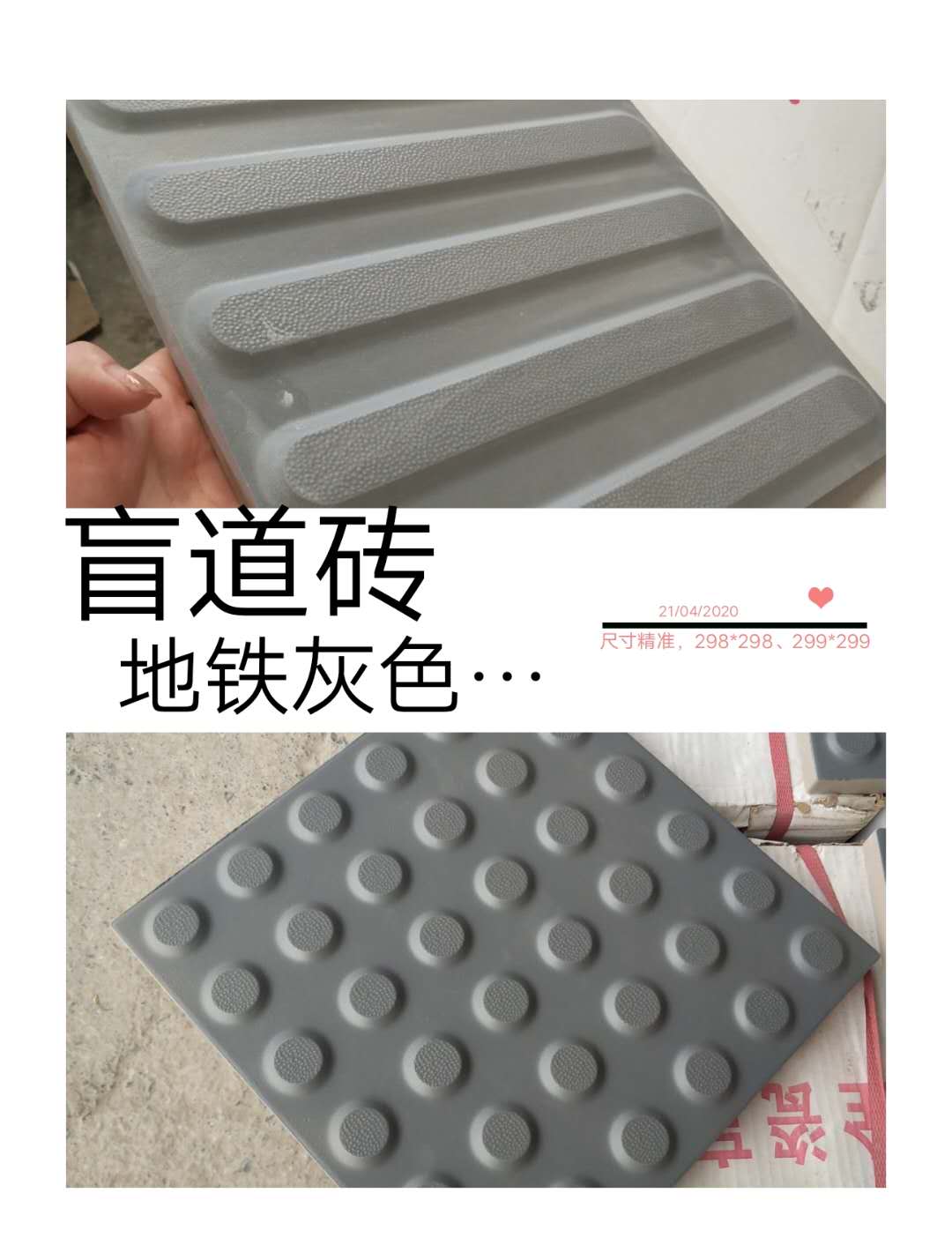 我們的盲道磚是全瓷的,不是塑膠的,也不是水泥,而且尺寸是經過修邊的,不要害怕有誤差,厚度也達標的,顏色是不會掉色脫色的,還有什么不放心的就電話咨詢吧!18239167111\18839118777